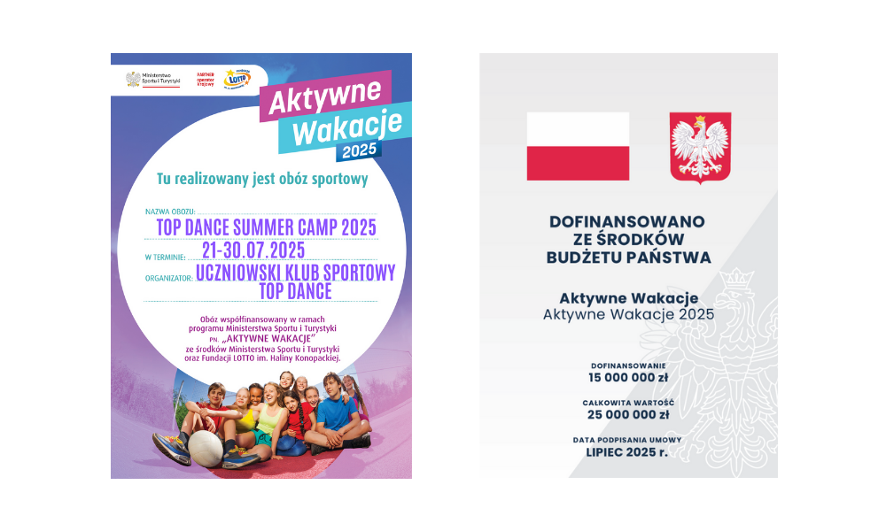 Jak co roku, nie możemy doczekać się naszego kolejnego letniego obozu TOP DANCE CAMP. Tak jak poprzednio, na uczestników czeka dużo zajęć sportowych, tanecznych oraz przygotowane niespodzianki. Letni obóz taneczny 2025 – zapisz się już dziś tu.
