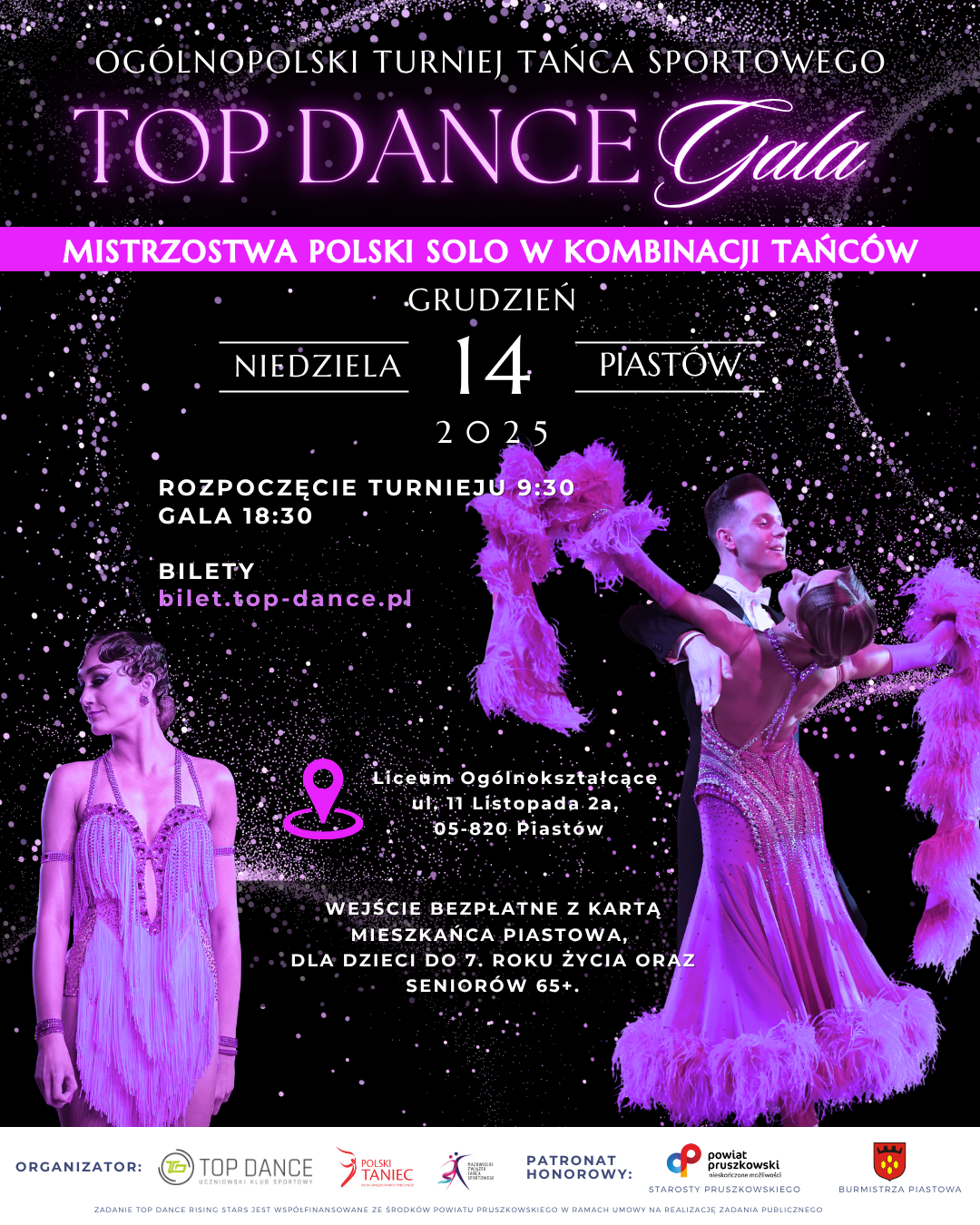 Z radością zapraszamy na pierwszą edycję Top Dance Gala 2025 – wyjątkowe wydarzenie taneczne, które po raz pierwszy zagości w Piastowie. To święto tańca, pasji i sportowej rywalizacji organizowane przez Uczniowski Klub Sportowy Top Dance.