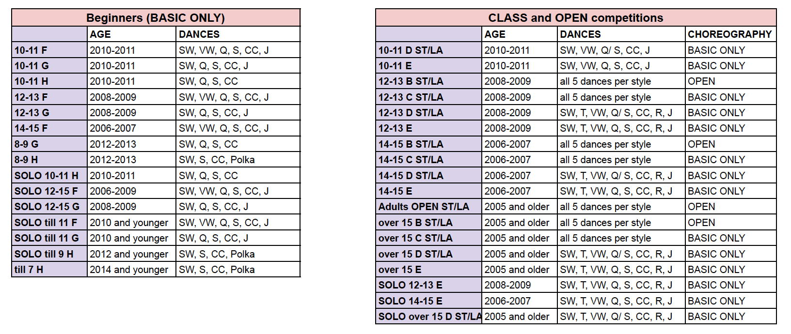 - Beginners couples (HGFE) – 80 zł. per couple